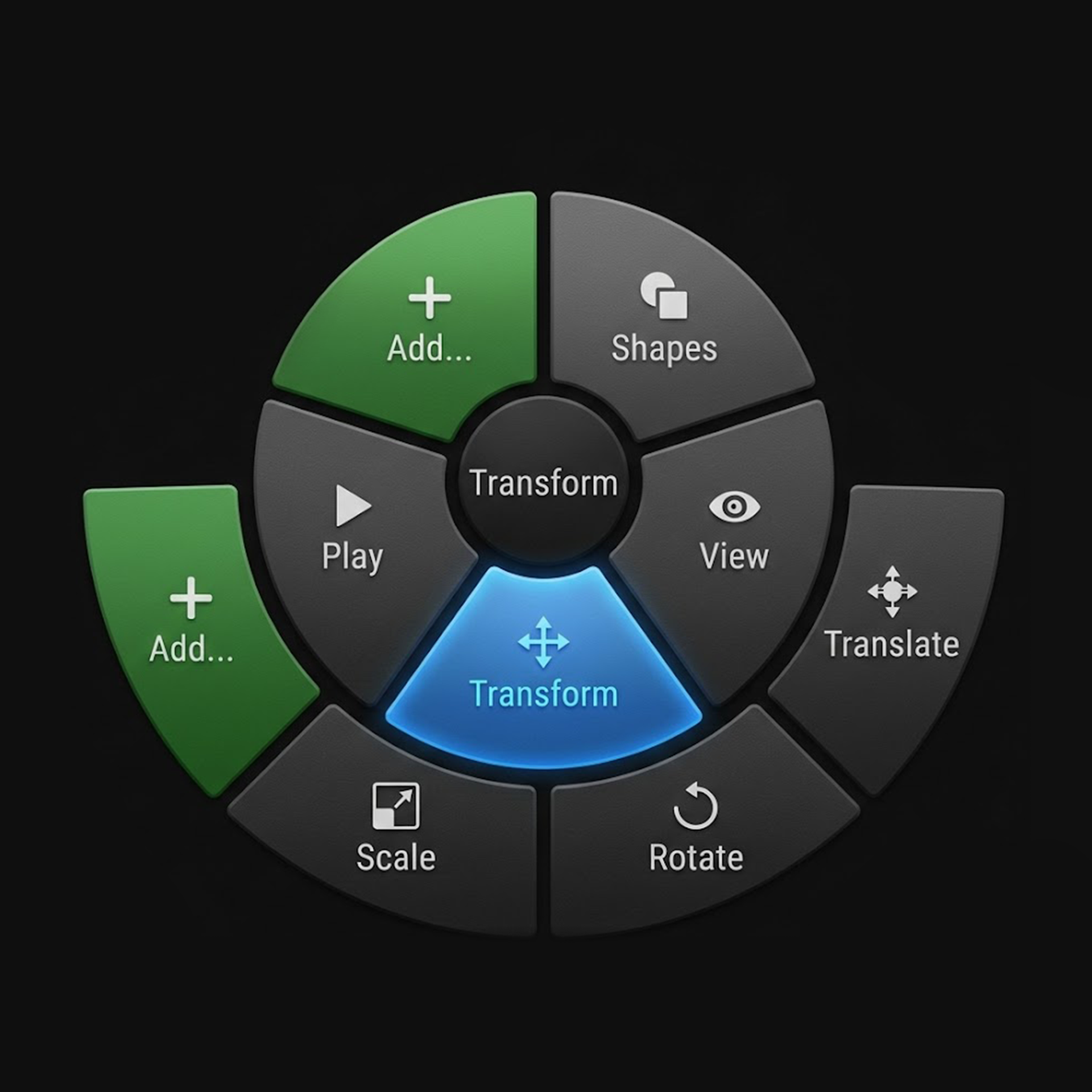 A beautiful radial menu, anywhere in the editor. One keypress away.